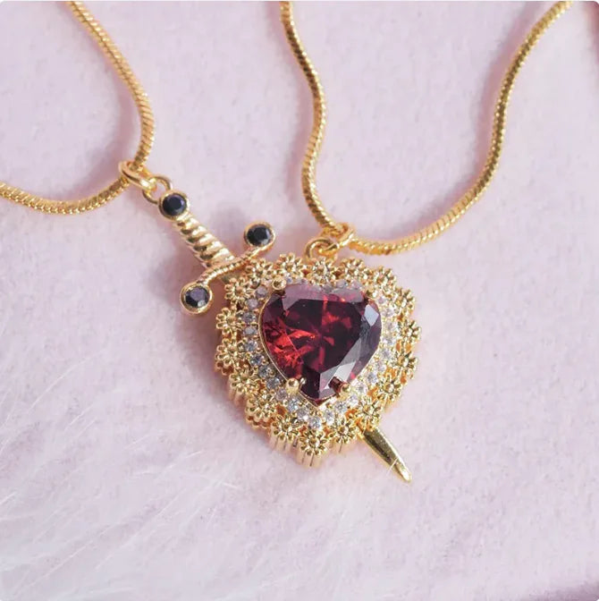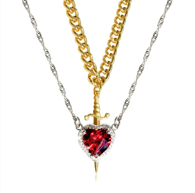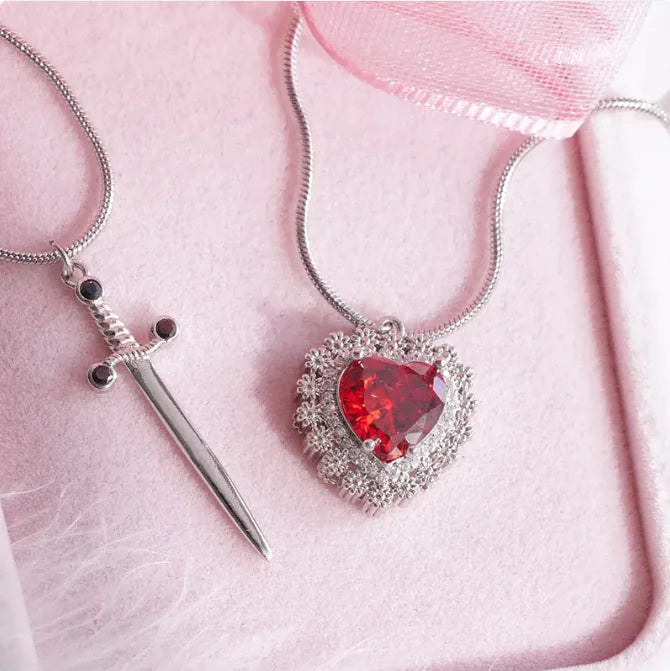 - Bold Colors: The vibrant red rhinestone heart creates a stunning visual contrast with the metallic dagger, ensuring the necklace stands out.