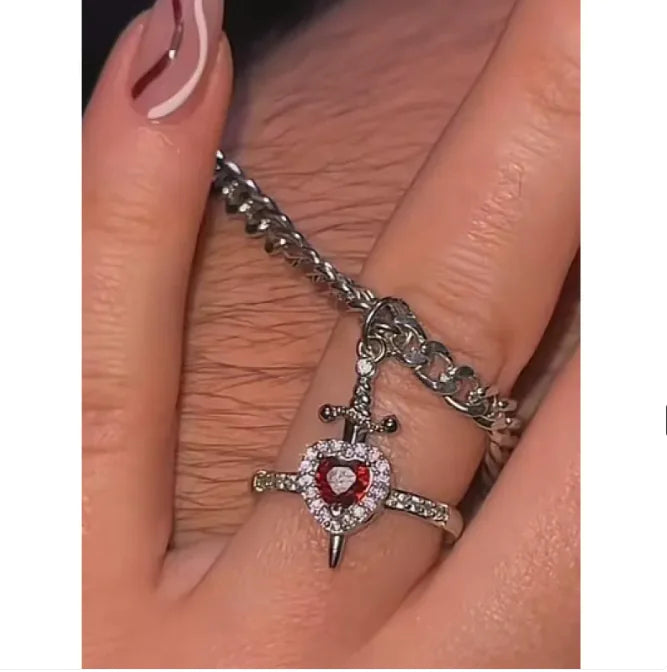- Unique Design: Red rhinestone heart pierced by a dagger, combining gothic, punk, and romantic influences.