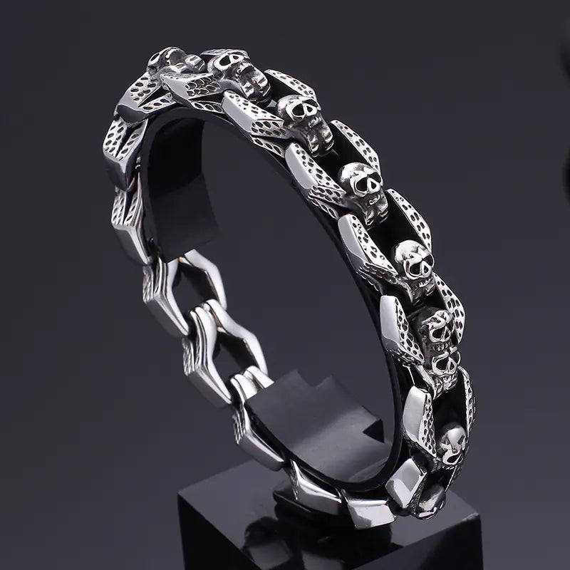 Embrace your bold style with our stunning Punk Skull Stainless Steel Bracelet. Crafted from high-quality titanium steel, this bracelet showcases a unique geometric design that is perfect for the modern man who isn’t afraid to stand out.